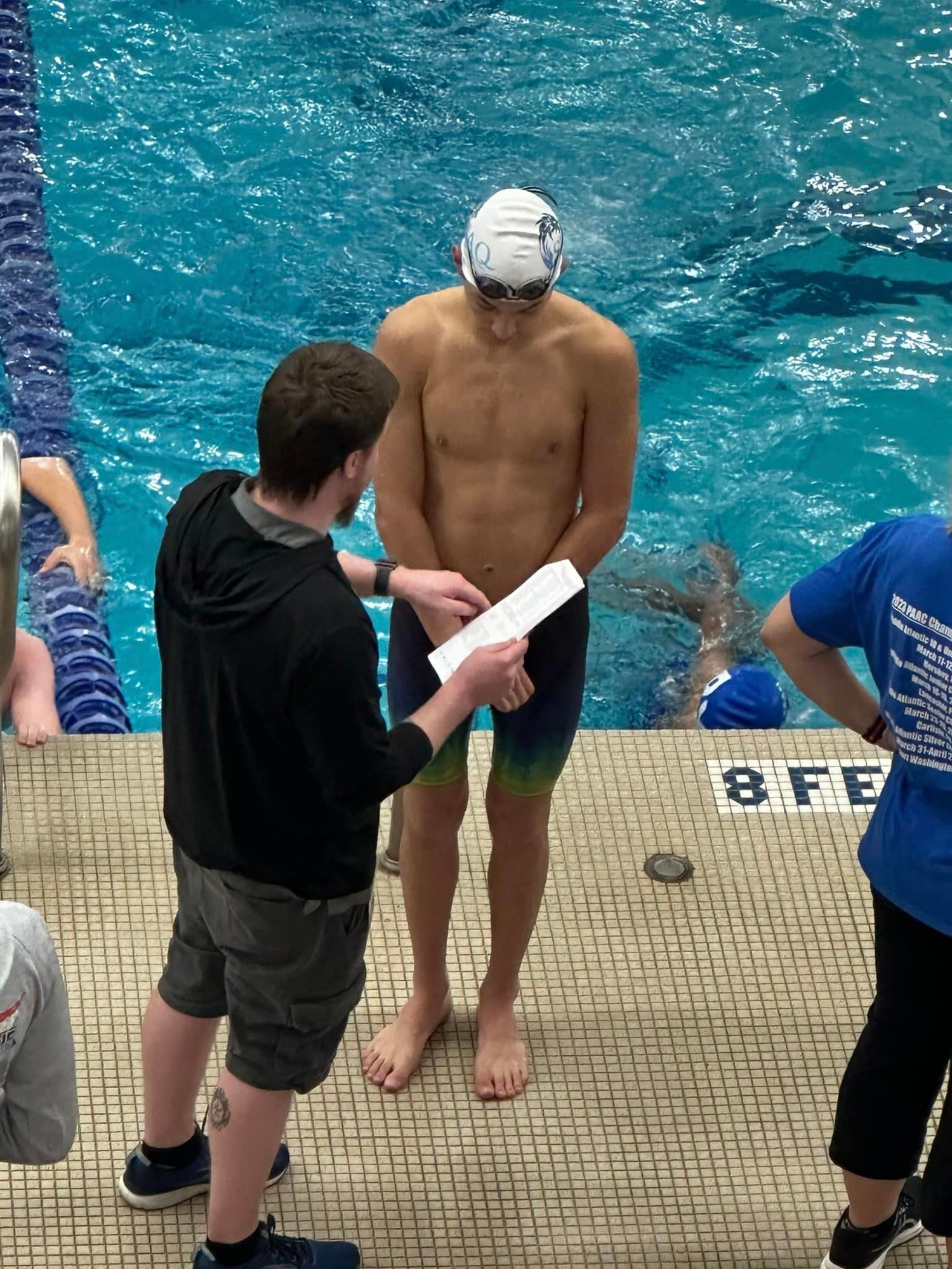 JP had an absolutely wild meet, starting it off with a 4-way tie for 20th place in the 50 freestyle (tied his PR of 23.21...) requiring a swim-off, tied again with a new PR of 23.08 in the swim-off, and then won the second swim-off with yet another PR of 23.01! Most swimmers get up to two chances to race an event in a day (prelims and finals), and JP was able to race three times all in prelims and improve with each one! Fantastic job, and he was a great sport all along as well. On the final day, he was also able to squeak into the B finals for the 100 freestyle and found himself racing in a lane next to his newly-found friend he tied with twice the previous day- the two had a great race and JP was able to move up a spot to secure 19th overall with a new PR of 50.64!