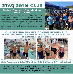 Evening STAQ Families! A few important reminders we wanted to share: Spring/Summer registration is open! And the Spring season for all groups starts on Monday April 28th- so please make sure to get those registrations in as soon as possible as the first day of practice is quickly approaching! I know all the Coaches are looking forward to seeing the kids back in the pool and to continue working with everyone! For more information, please visit our website and see the attached flyer. We will be putting in an order...