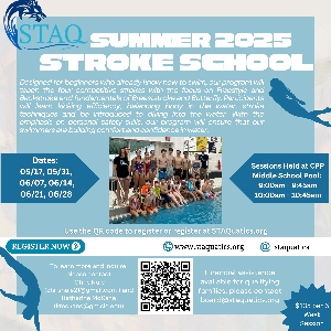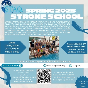 It's time to get excited! We are thrilled to announce that the registration for the Spring 2025 session of the STAQ Stroke School is officially open! Please feel free to reach out with questions or to learn more- info is on the flyer. Looking forward to seeing you there!