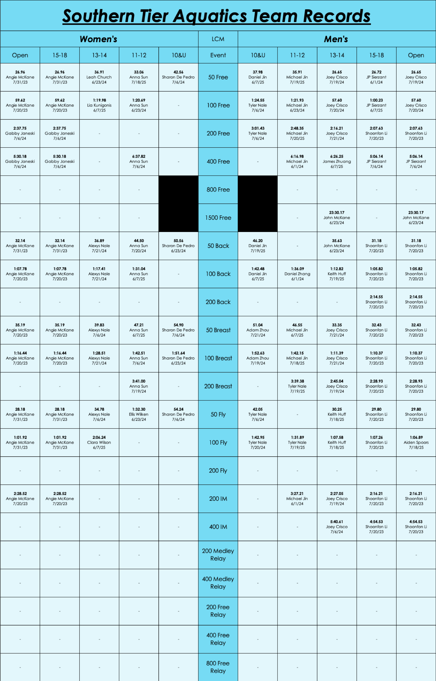 STAQ Team Records