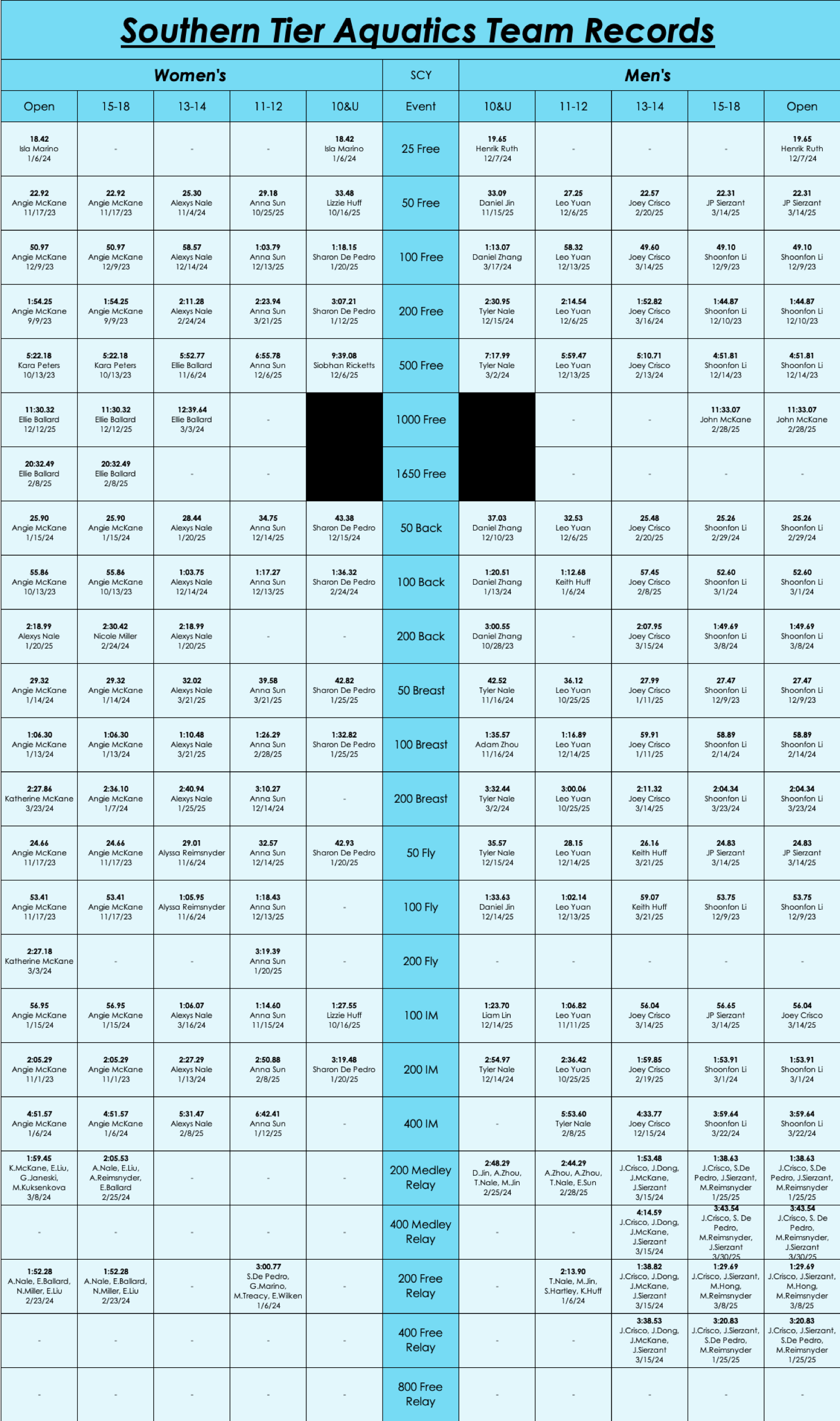 SCY, LCM, scroll down for by-swimmer record tallies!